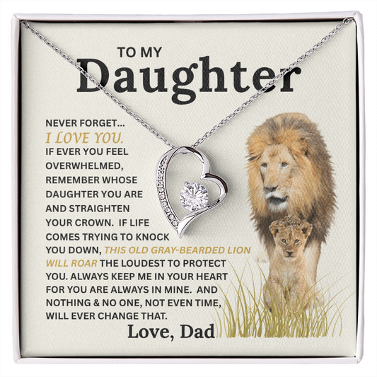 Gift for Daughter from Dad - Forever Love Necklace with "This Old Gray-Bearded Lion's Roar" Message