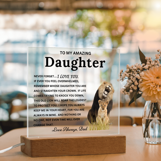 Gift to Daughter from Dad - "This Old Lion" Timeless Keepsake Acrylic Plaque with LED Base