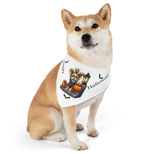 Happy "Hallowoof" - LARGE Pet Bandana Collar WHITE 01