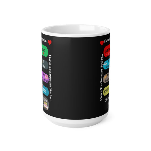 I Love You Because Ceramic Coffee Cup, 15oz Black for Him