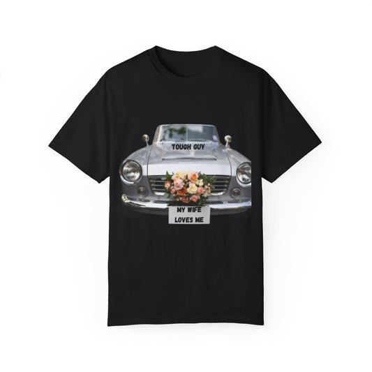 Men's T-Shirt Tough Guy Car with My Wife Loves Me Flowers Design