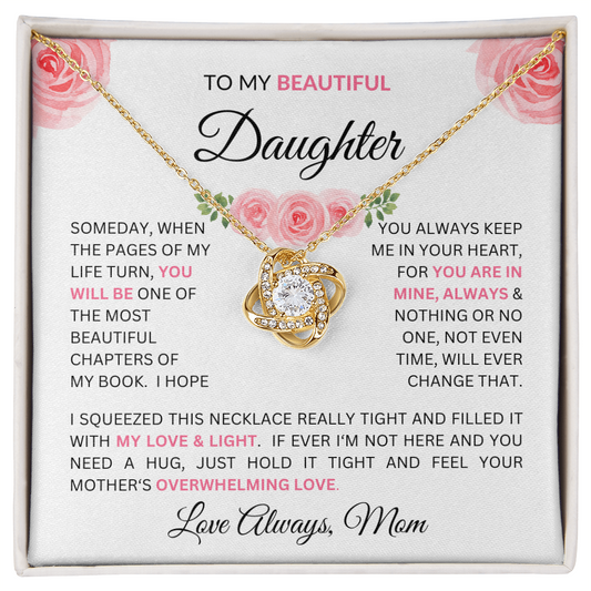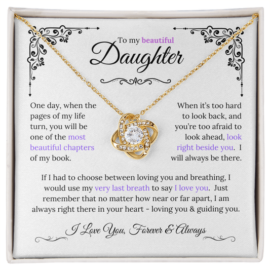 Stunning Daughter Gift "Most Beautiful Chapters" Gold Knot Necklace
