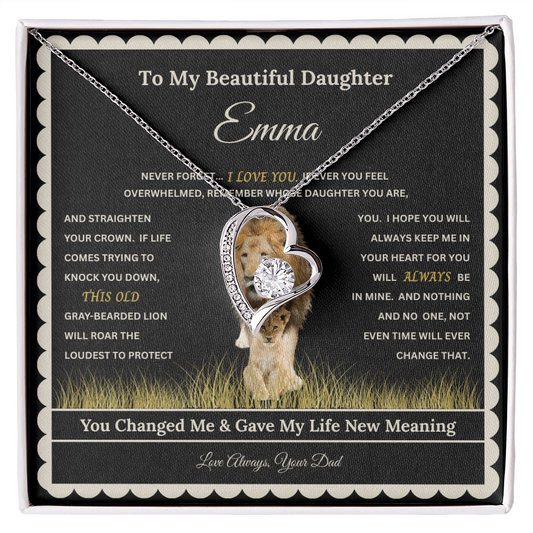 Gift for Daughter from Dad - Forever Love Necklace with "This Old Gray-Bearded Lion's Roar" Message
