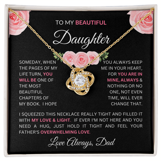 Gift to Daughter from Dad - "Some Day When the Pages of My Life Turn" Message with Love Knot Necklace