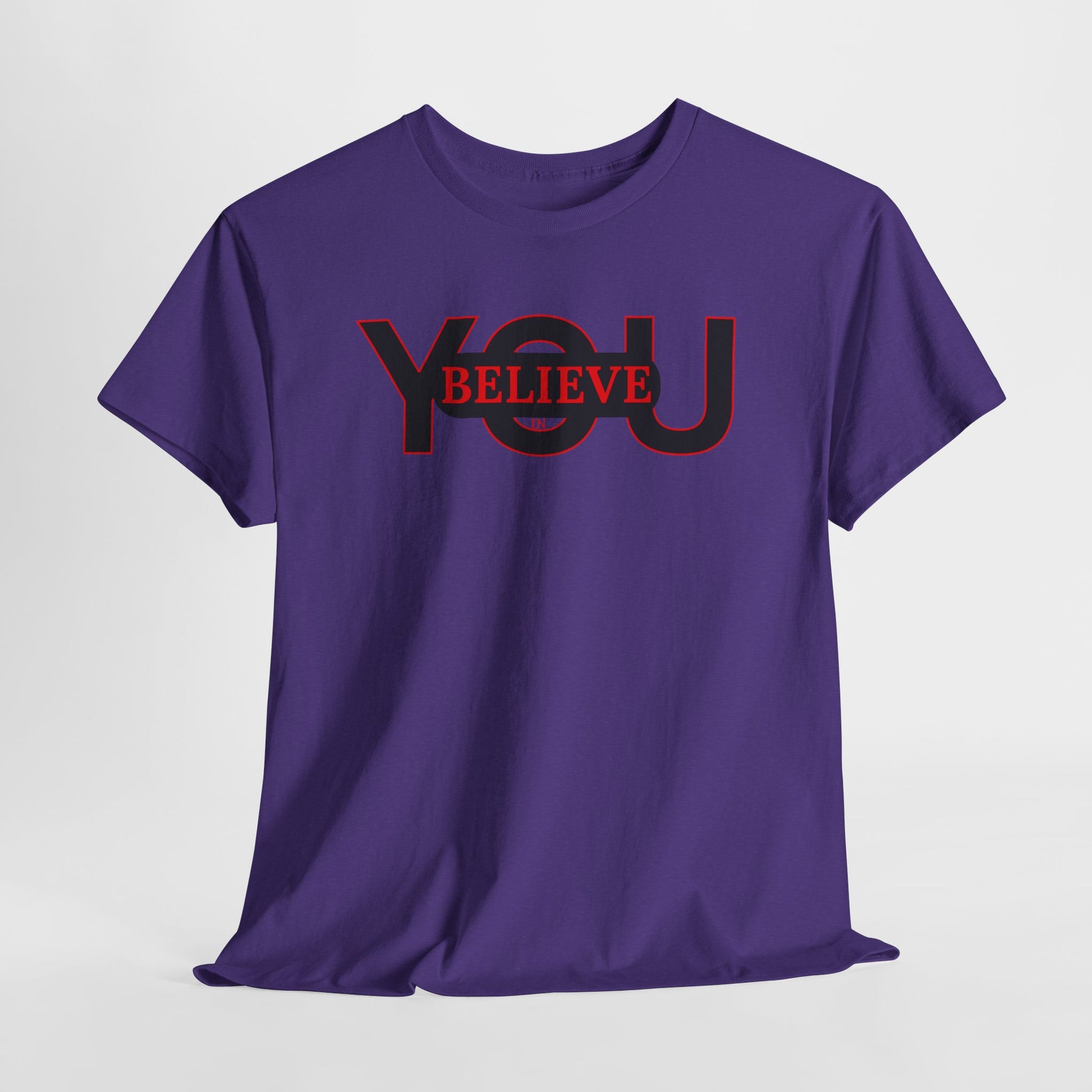 Motivational self-care tee that reads "Believe in You". This comfortable and inspiring tee is perfect for adults looking for a positive message to wear daily. Suitable for everyday wear or as a thoughtful gift for birthdays, self-care days, and motivational occasions.