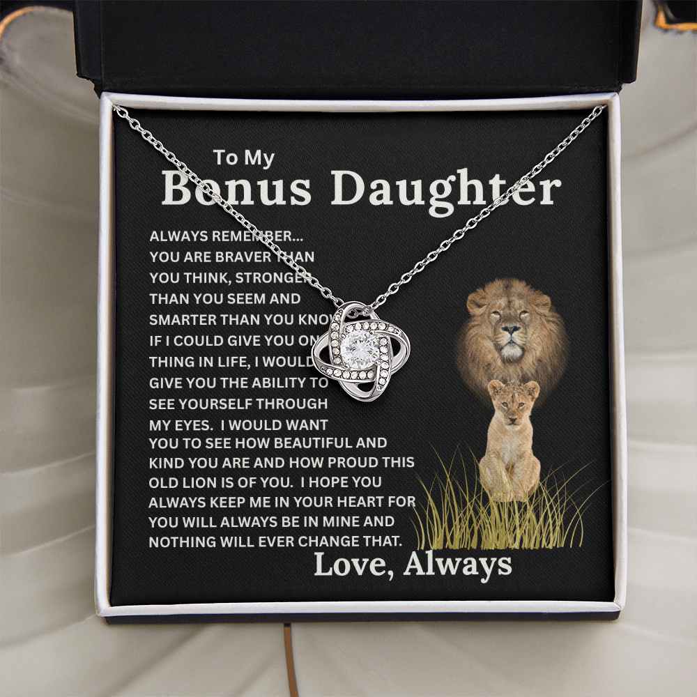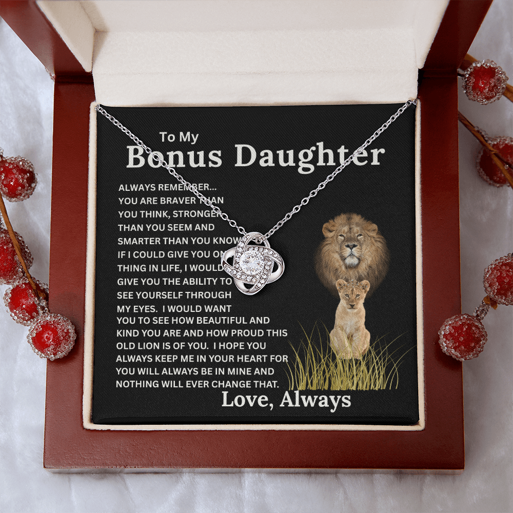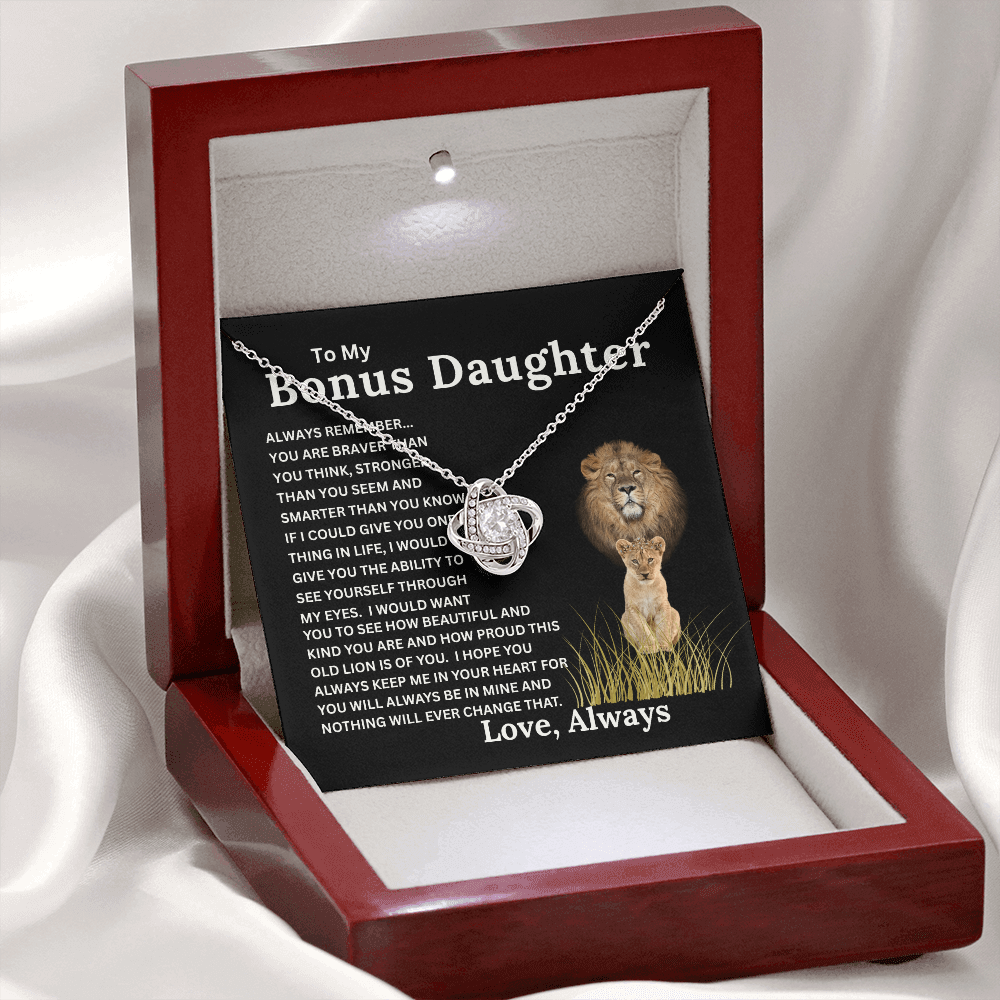 Bonus Daughter Love Knot Necklace with Sentimental Message Card Gift from Bonus Dad to Stepdaughter
