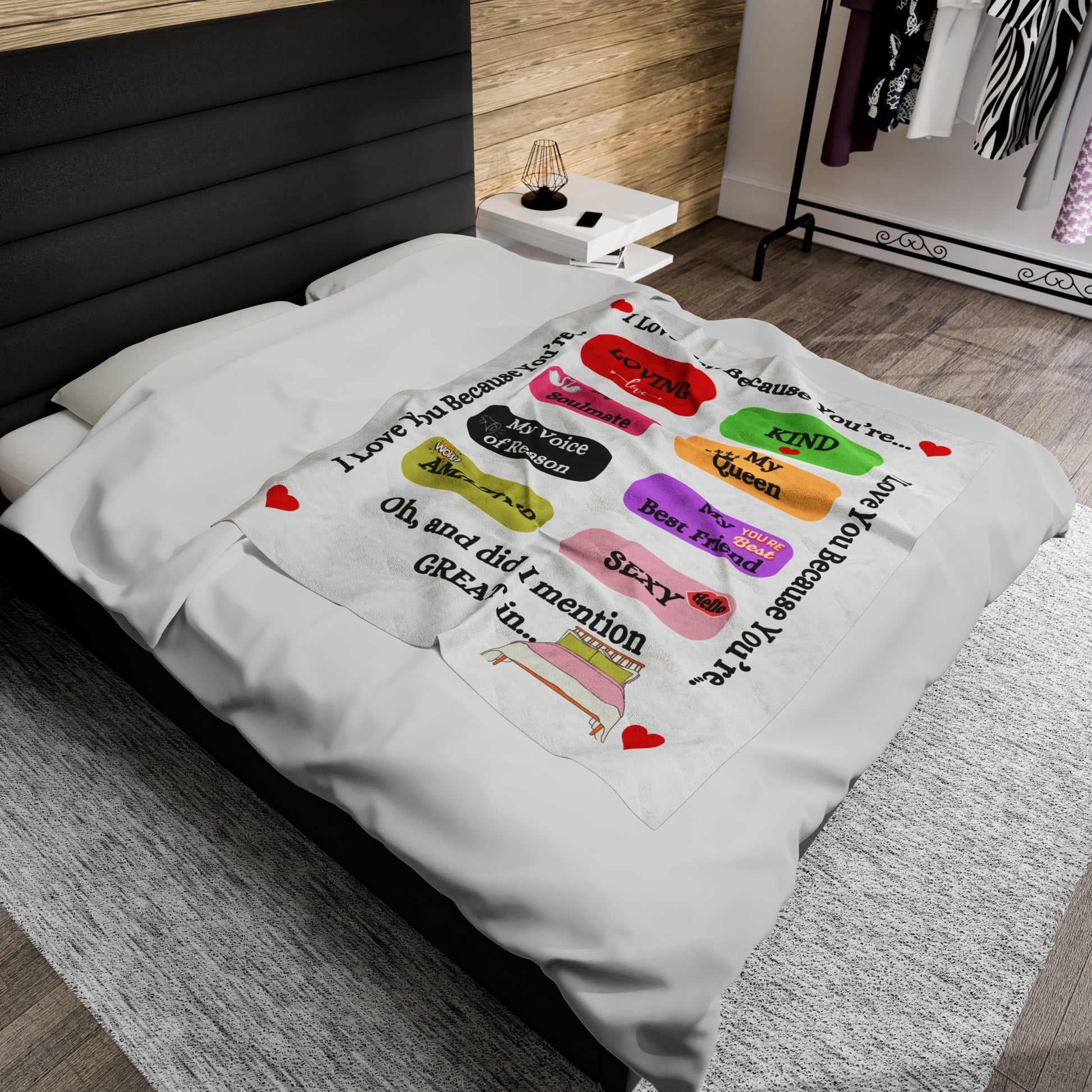 I Love You Because - Velveteen Plush Blanket 50X60 for Her