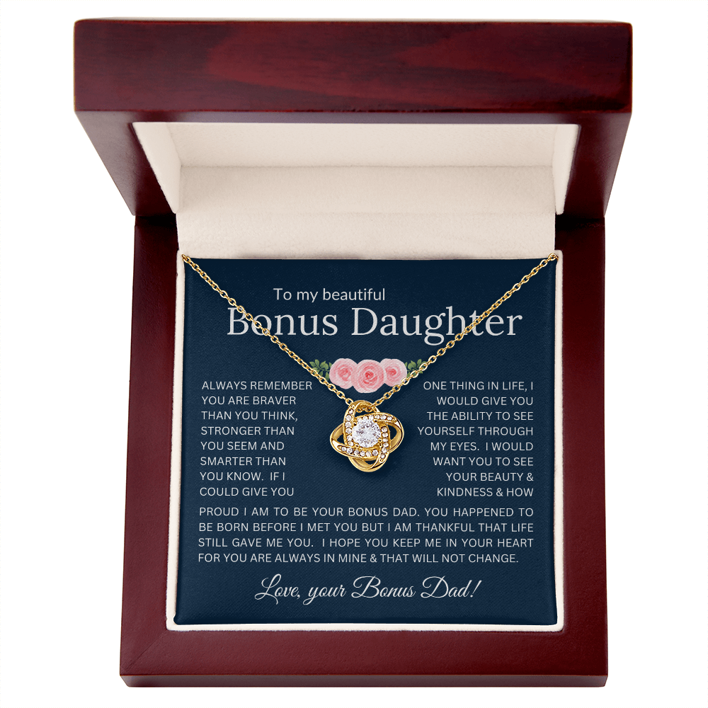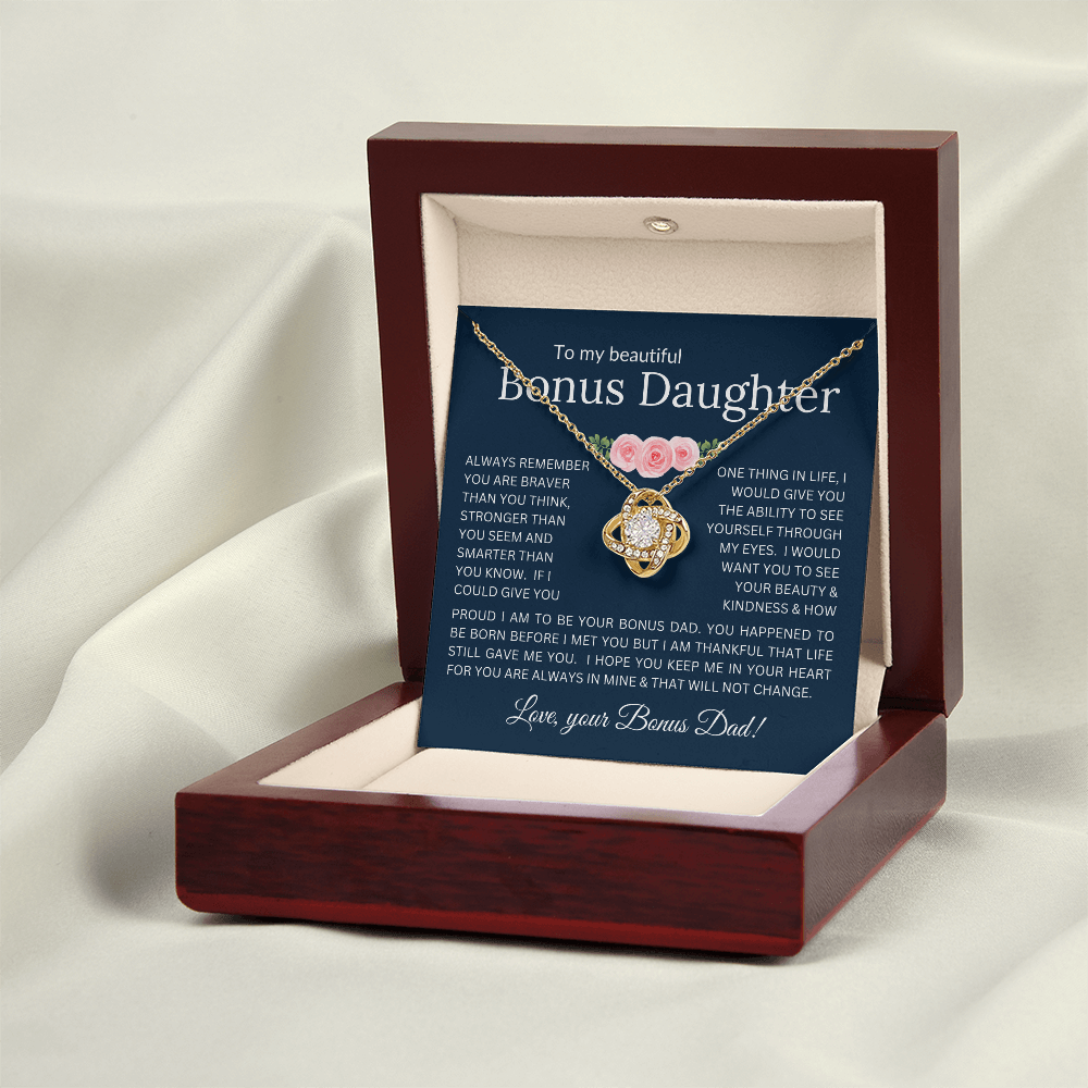 Love Knot Necklace Infinite Love for Bonus Daughter Gift with Heartfelt Message from Bonus Dad to Stepdaughter