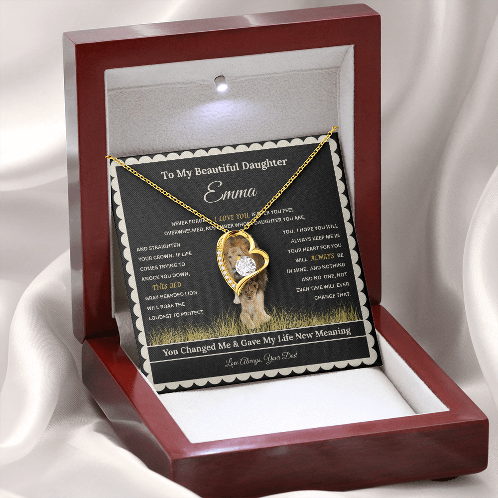 This stunningΒ Heart Necklace is more than just jewelry β it is a heartfelt reminder of love, protection, and lifelong connection. Featuring a Personalized Message Card with her name beautifully displayed and a hand-selected sentiment of your choice, this keepsake transforms an already meaningful gift into something deeply personal.