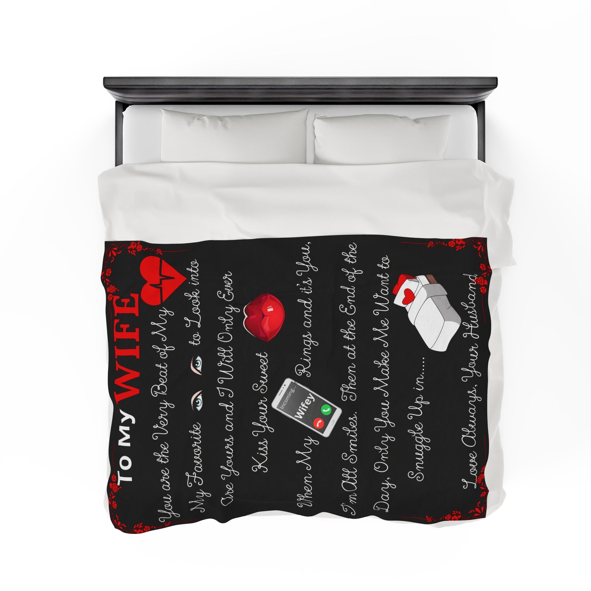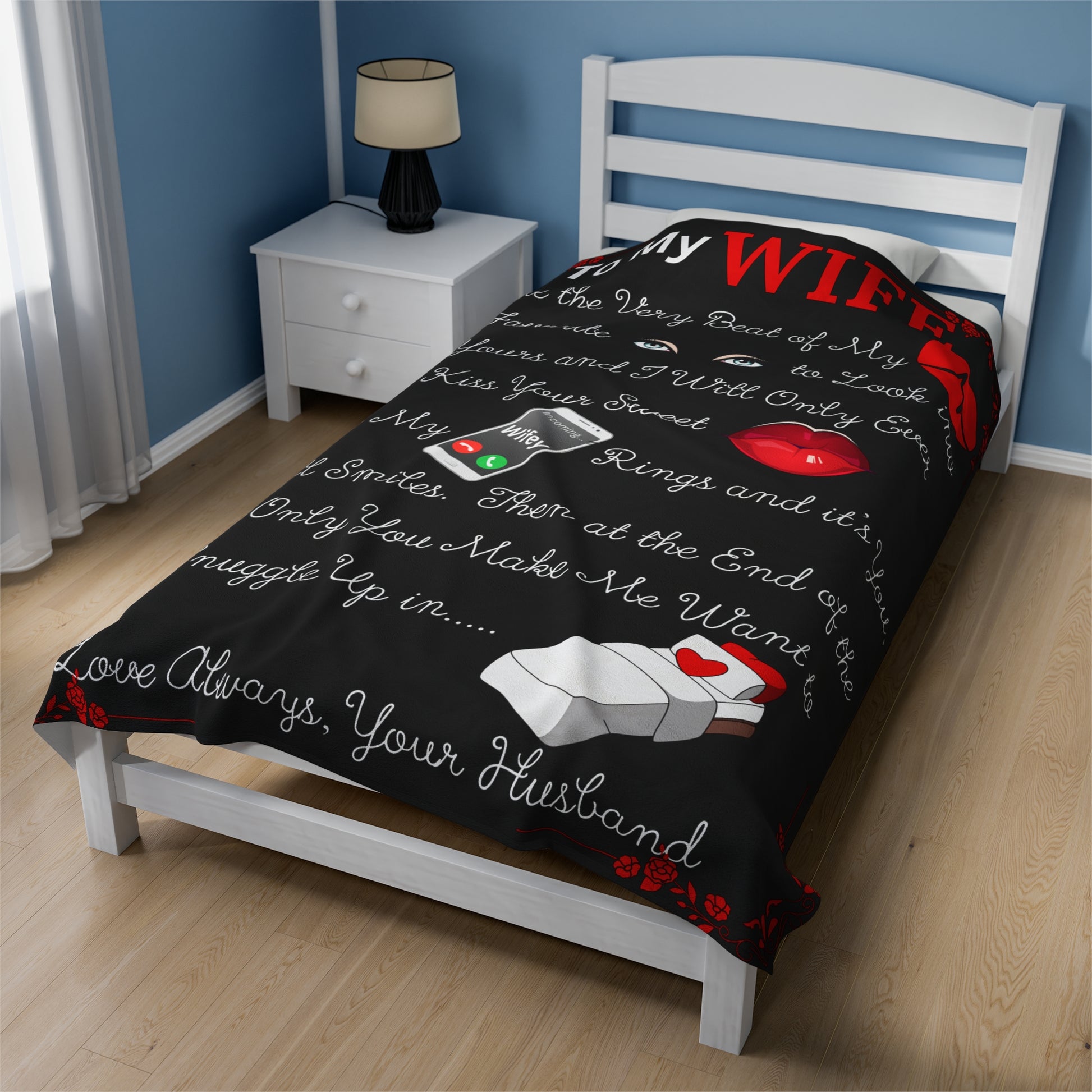 Surprise your wife with this Beautifully Unique Blanket, create a warm and cozy atmosphere for her with this plush velveteen blanket. It is soft to the touch and it's the perfect gift for Valentine's Day, Birthdays, Anniversaries, Mother's Day, Special Occasion or Just Because. It is available in largest size 60x80" - perfect for snuggling up with her.