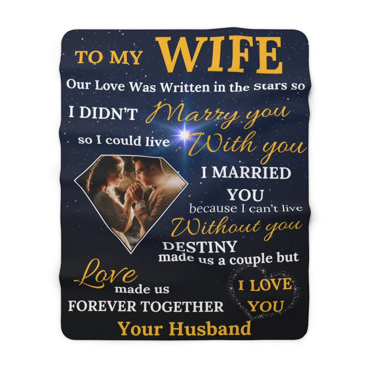 To My Wife Our Love Written in the Stars - PERSONALIZED DIAMOND PHOTO Sherpa Fleece Blanket