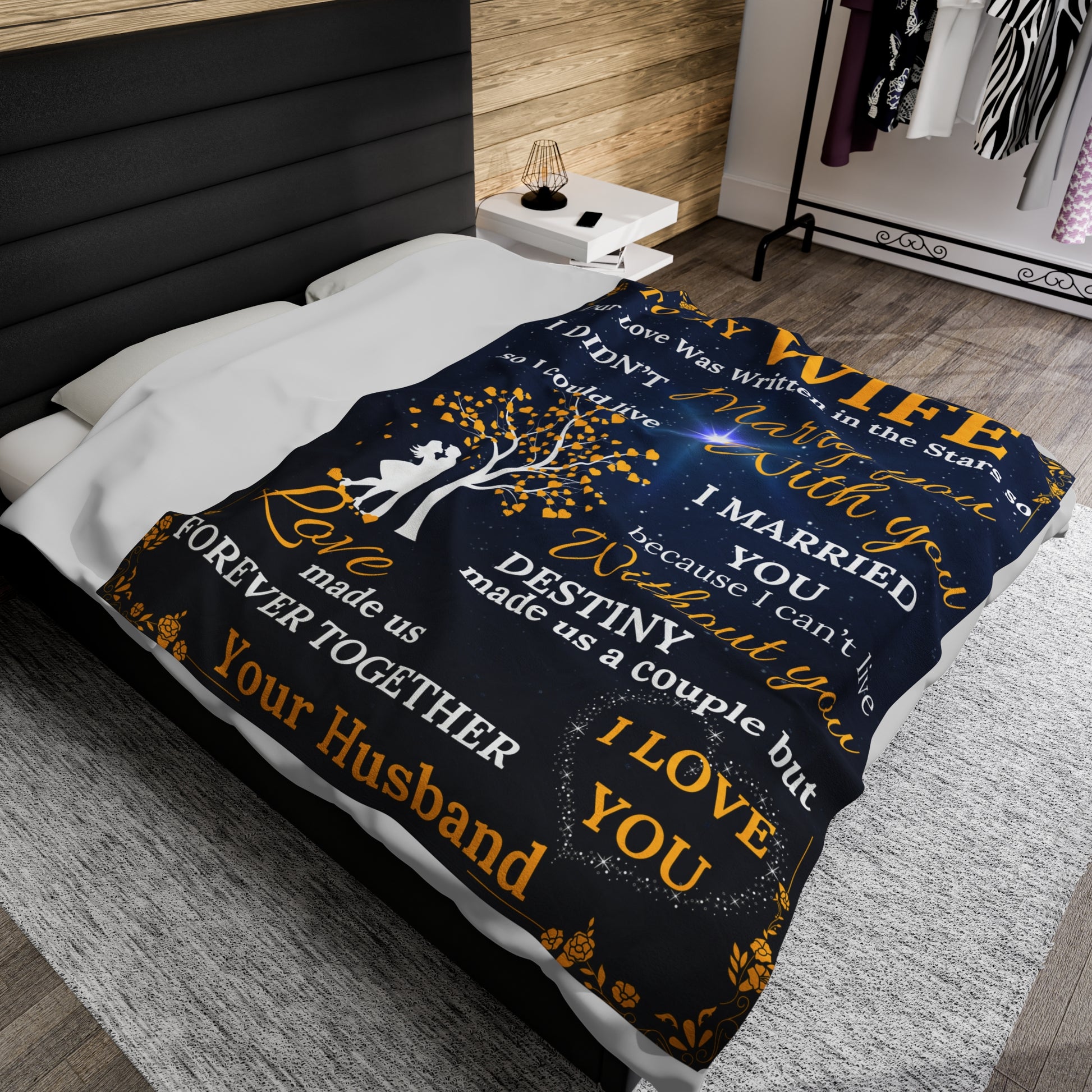 To My Wife Why I Married You - Gold Velveteen Plush Blanket Blue/Black