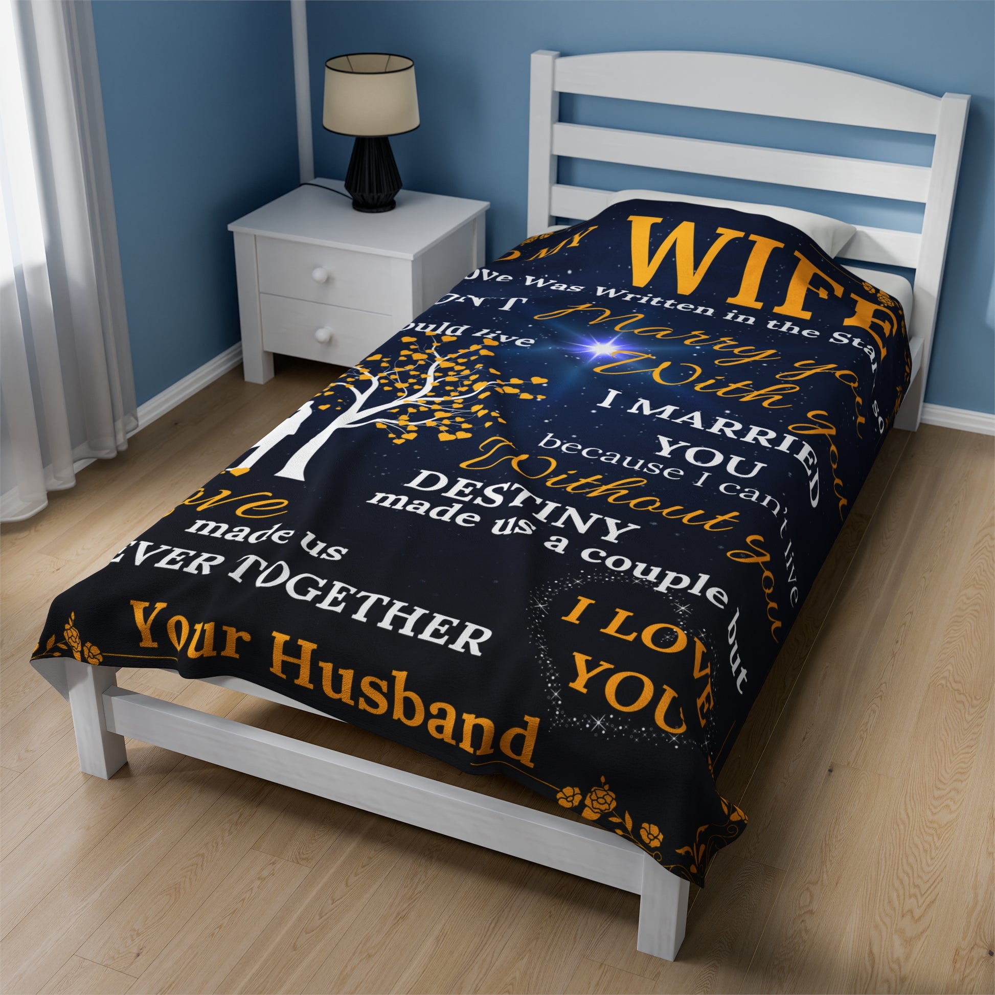 Give your Wife this Beautiful Blanket - letting her know why you married her. Love is in the air but so is a chill so create a warm & cozy atmosphere for her with this plush velveteen blanket. It is soft to the touch and perfect makes the perfect gift for Valentine's Day, Birthdays, Anniversaries, Mother's Day, Special Occasion or Just Because. Available in largest size 60x80" - perfect for snuggling up with her.